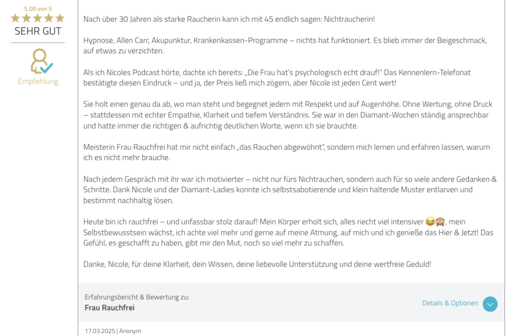 Nicht, weil Du es nicht ernst meinst. Nicht, weil Du nicht weißt, wie schädlich Rauchen ist. Sondern weil es irgendwann zu viel wurde.